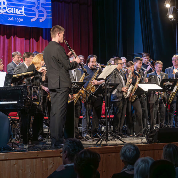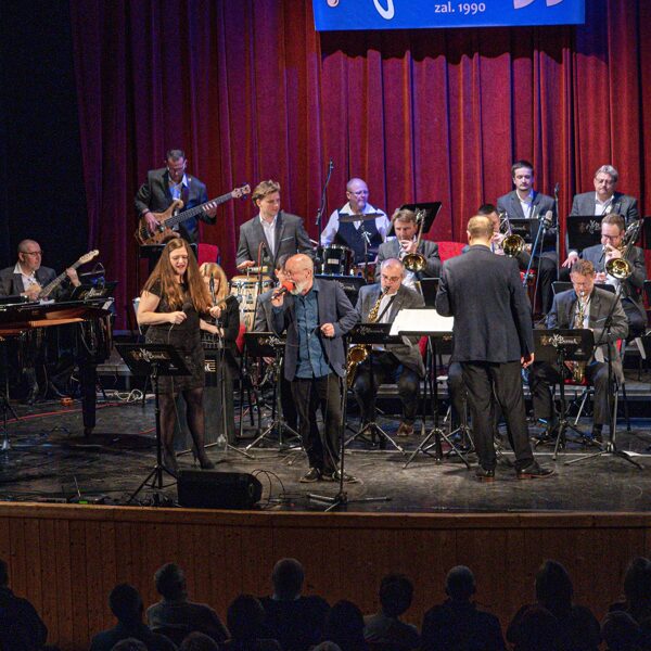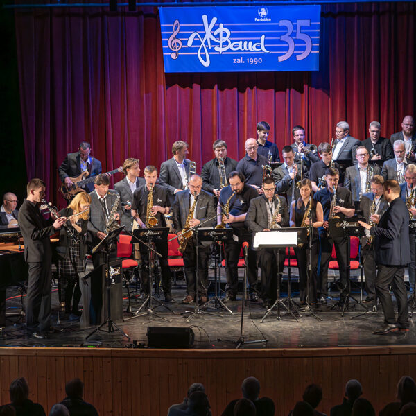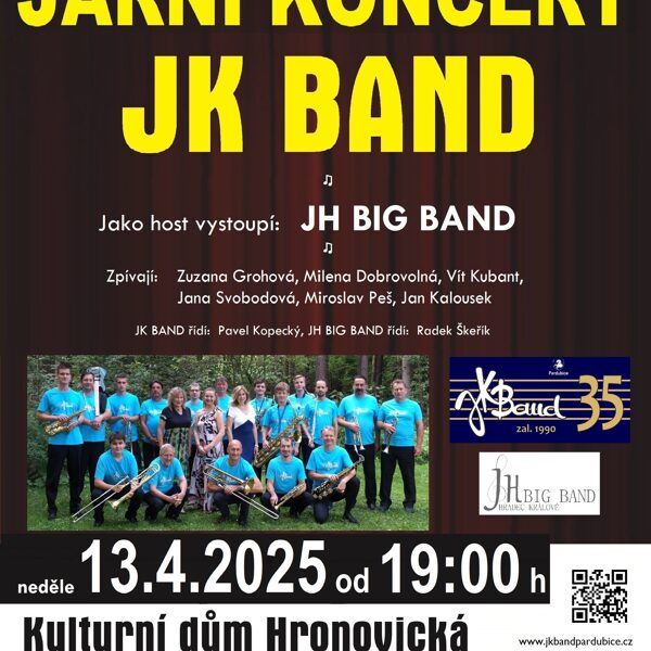 V neděli 23. dubna 2025 jsme oslavili v KD Hronovická 35 let od založení JK Bandu. Jako hosta jsme si pozvali královéhradecký JH BIG BAND pod vedením Radka Škeříka. První polovina koncertu patřila JK Bandu a jeho sólistům, v druhé polovině se přestavili naši kolegové z Hradce Králové. Zpívali Zuzka Grohová, Mili Dobrovolná, Vítek Kubant, Jana Svobodová, Míra Peš a Honza Kalousek. Byl to moc příjemný večer, nejvíce jsme si však všichni užili samotný závěr koncertu, kdy si oba big band zahráli společně Americkou patrolu a Blues pro tebe.